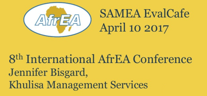 Khulisa former Director, Jennifer Bisgard, presented on the EvalAgenda and the 8th AfrEA Conference at SAMEA EvalCafe on April 10, 2017. SAMEA members participated through